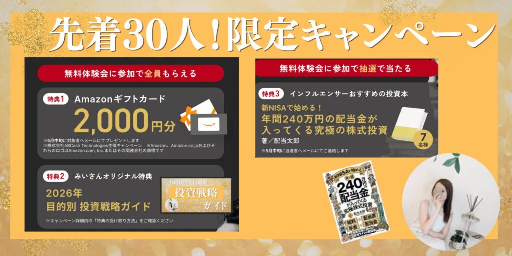 みい限定プレゼントの「2026年目的別 投資戦略ガイド」があります!