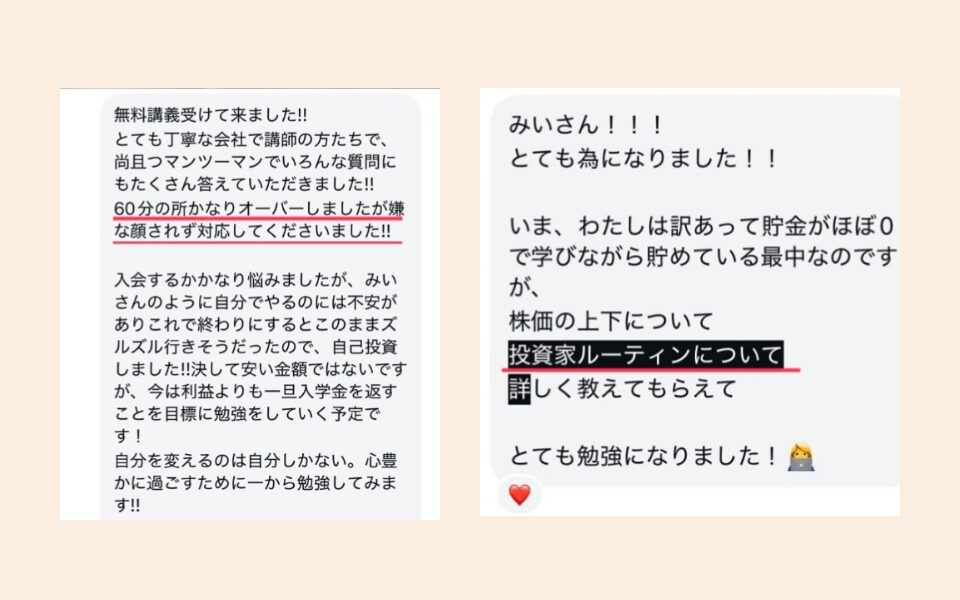 お金のプロが、個別で教えてくれるから、投資初心者さんでも安心して学べるよ😊