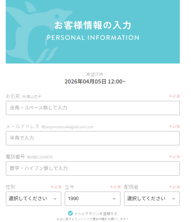 名前・連絡先などを入力するよ✨