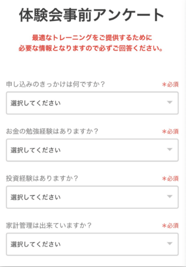 この後に、投資歴など簡単な質問に答えていくよ!